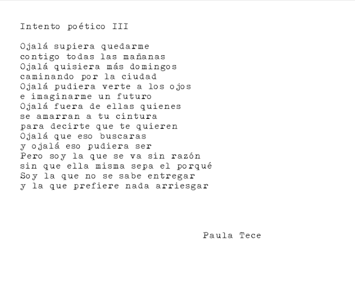Intento poético III Paula TeceJune 15, 2019September 3, 2019Letras Post navigation PreviousNext <íntimo, sincero, real> Manos literarias 15/06/2019 Share this: Share on X (Opens in new window) X Share on Facebook (Opens in new window) Facebook Share on WhatsApp (Opens in new window) WhatsApp Email a link to a friend (Opens in new window) Email Like Loading...
