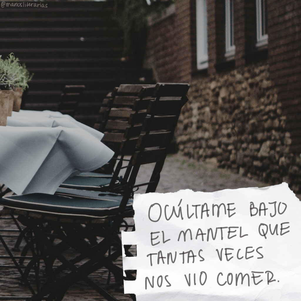 ocúltame bajo el mantel que tantas veces nos vio comer