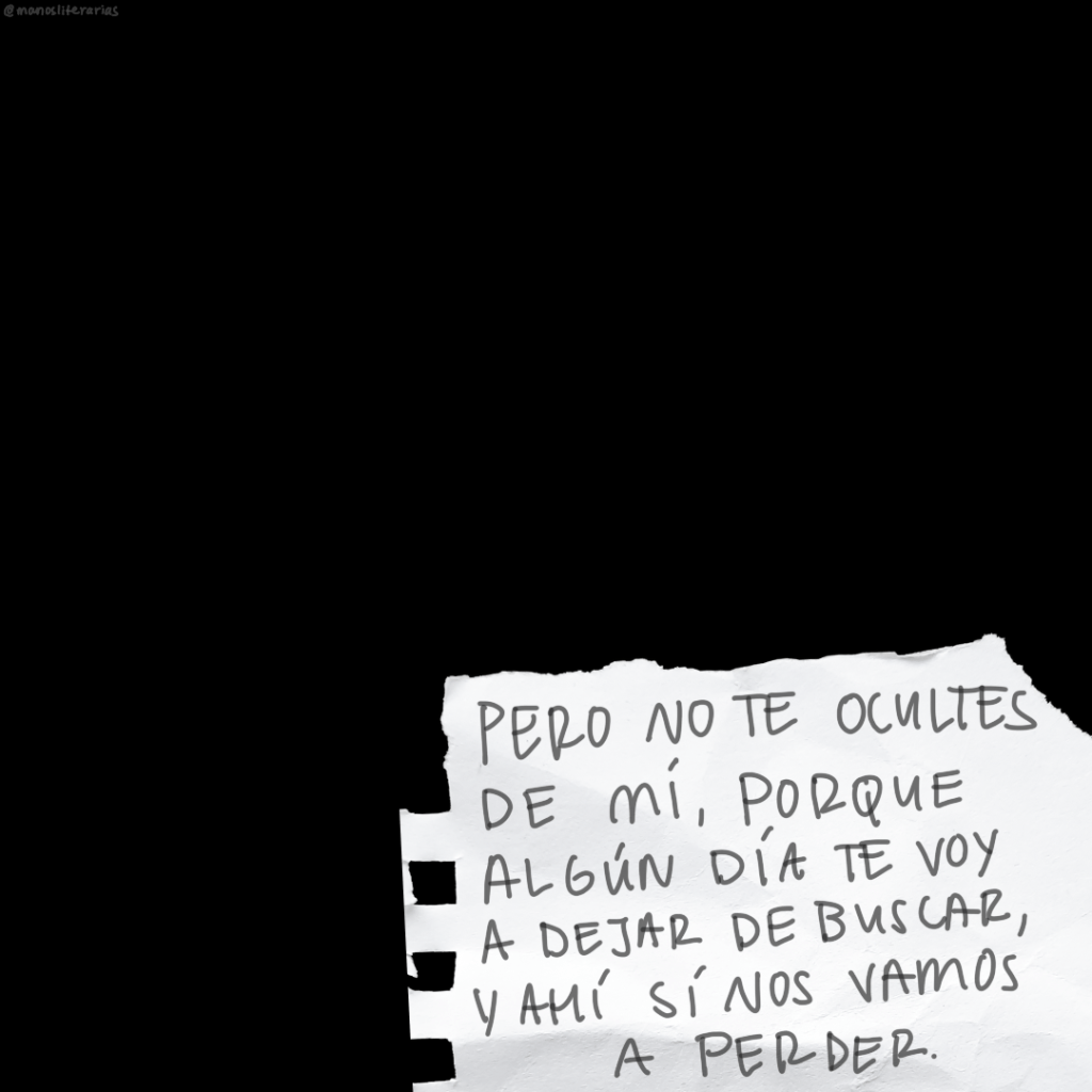 pero no te ocultes tú de mí, porque algún día te voy a dejar de buscar, y ahí sí nos vamos a perder.