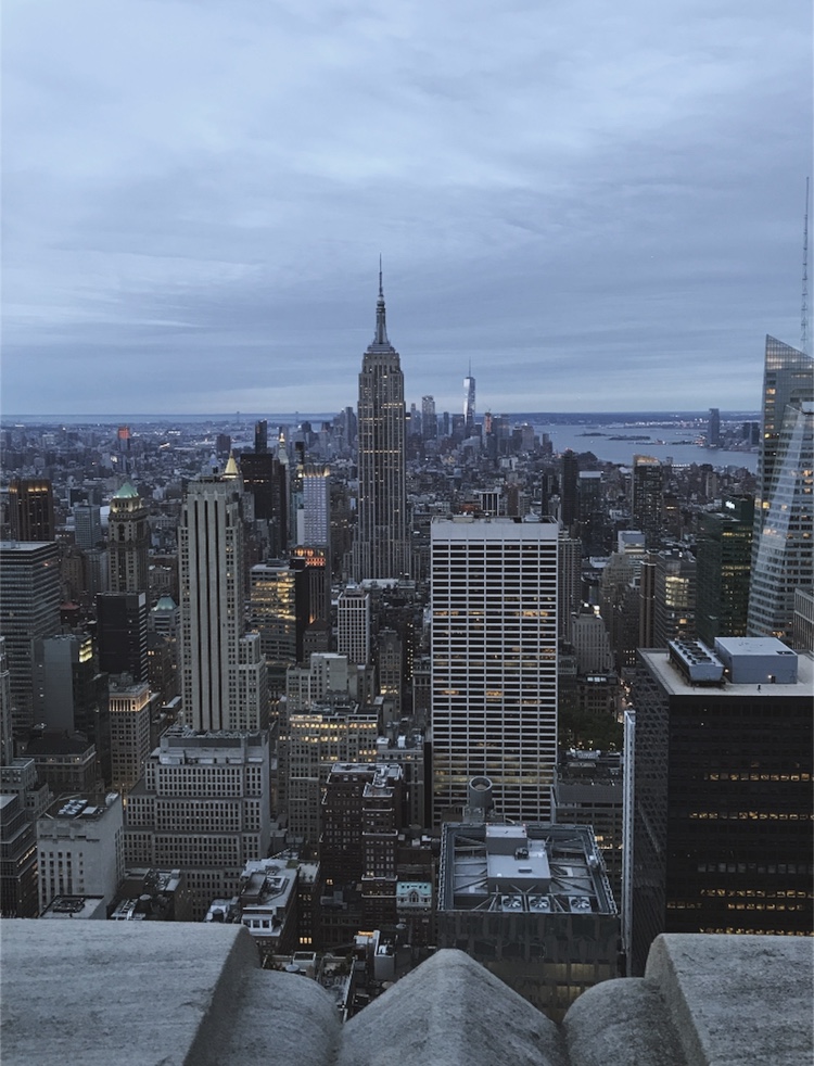 Nos pasamos toda la tarde en la terraza del Rockefeller Center. Caminábamos entre la muchedumbre, incapaces de procesar la inmensidad de la ciudad… aunque tal vez el vértigo también nos limitó los pensamientos, porque no existían palabras que pudieran describir lo que sentimos estando ahí arriba. Y el atardecer que nos acompañó ese día pintó de colores diferentes cada foto.